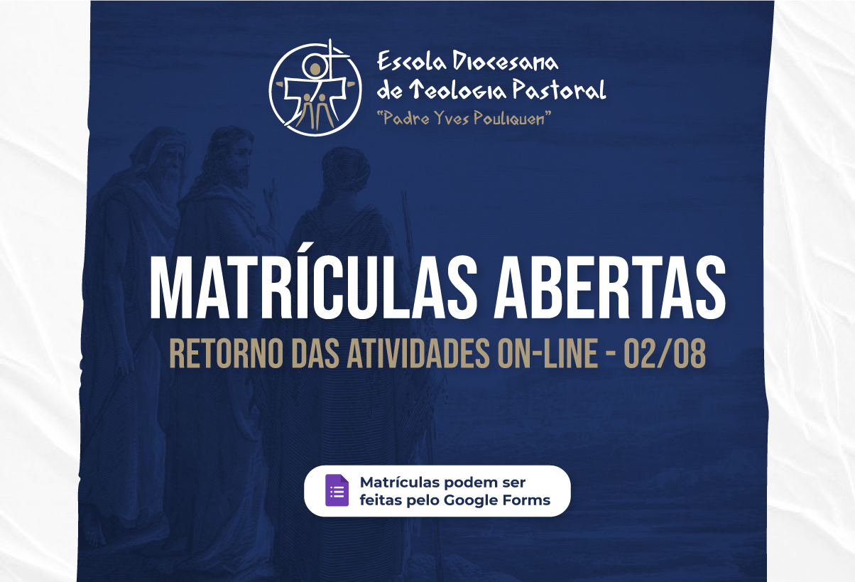 A Escola Diocesana de Teologia Pastoral Pe. Yves Pouliquen vai retomar suas atividades no próximo dia 2 de agosto, de forma on-line, até que seja possível voltar com as aulas presenciais.