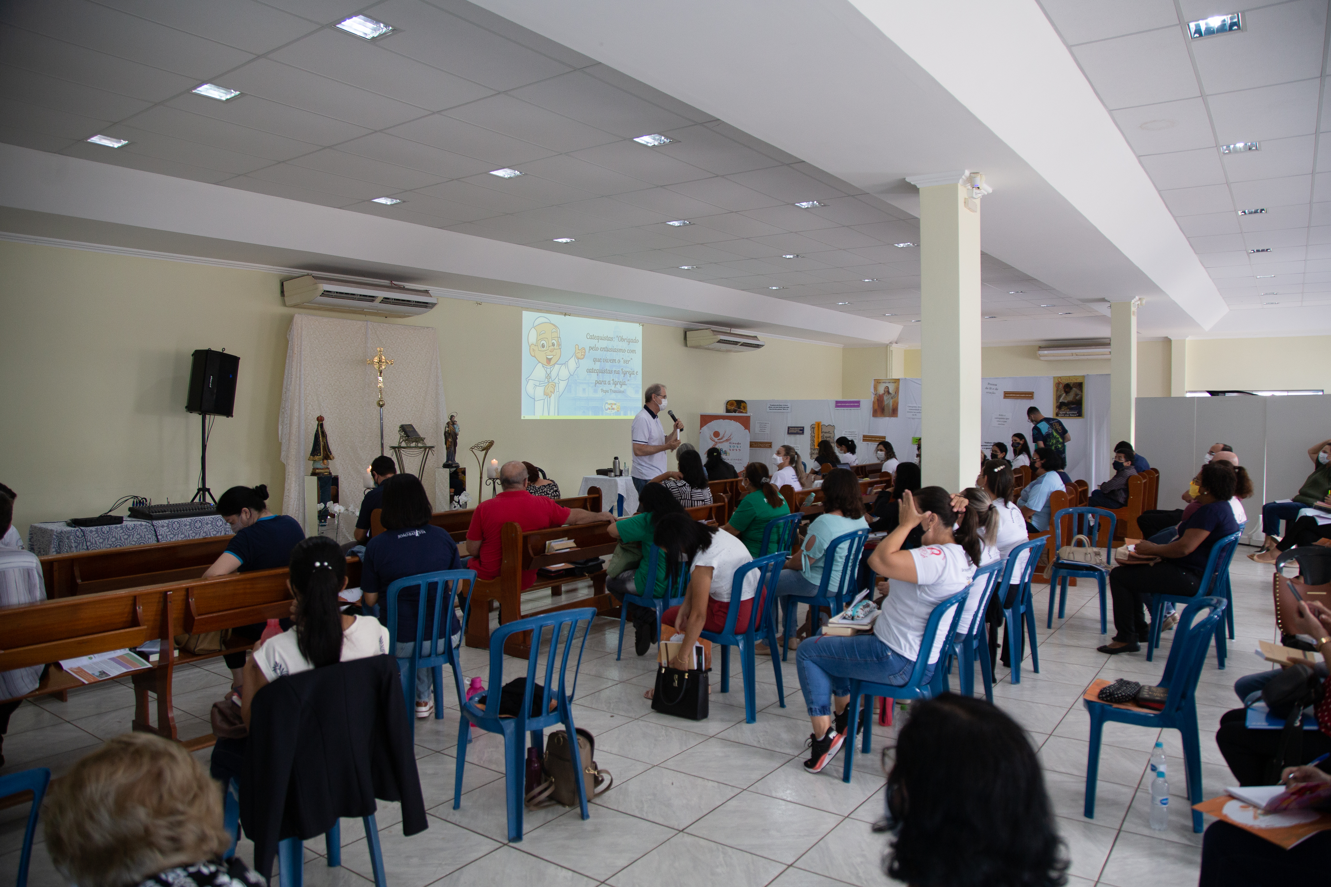Nosso bispo diocesano, Dom Bruno Versari, também se fez presente e falou sobre a vocação do catequista e Sínodo dos Bispos 2021-2023. Em uma das suas falas, o bispo explicou “que o catequista tem que ser eclesial, compreender os ensinamentos da Igreja, fazer parte da comunidade que serve a Jesus e deve viver a pedagogia do mistério de Cristo”. Sobre o Sínodo, Dom Bruno falou sobre essa etapa diocesana e sobre o processo de escuta, em especial o questionário que foi elaborado junto com a cartilha que foi distribuída para toda a Diocese. “As perguntas são para provocar a fala, caminhar juntos com a Catequese” afirmou o bispo.